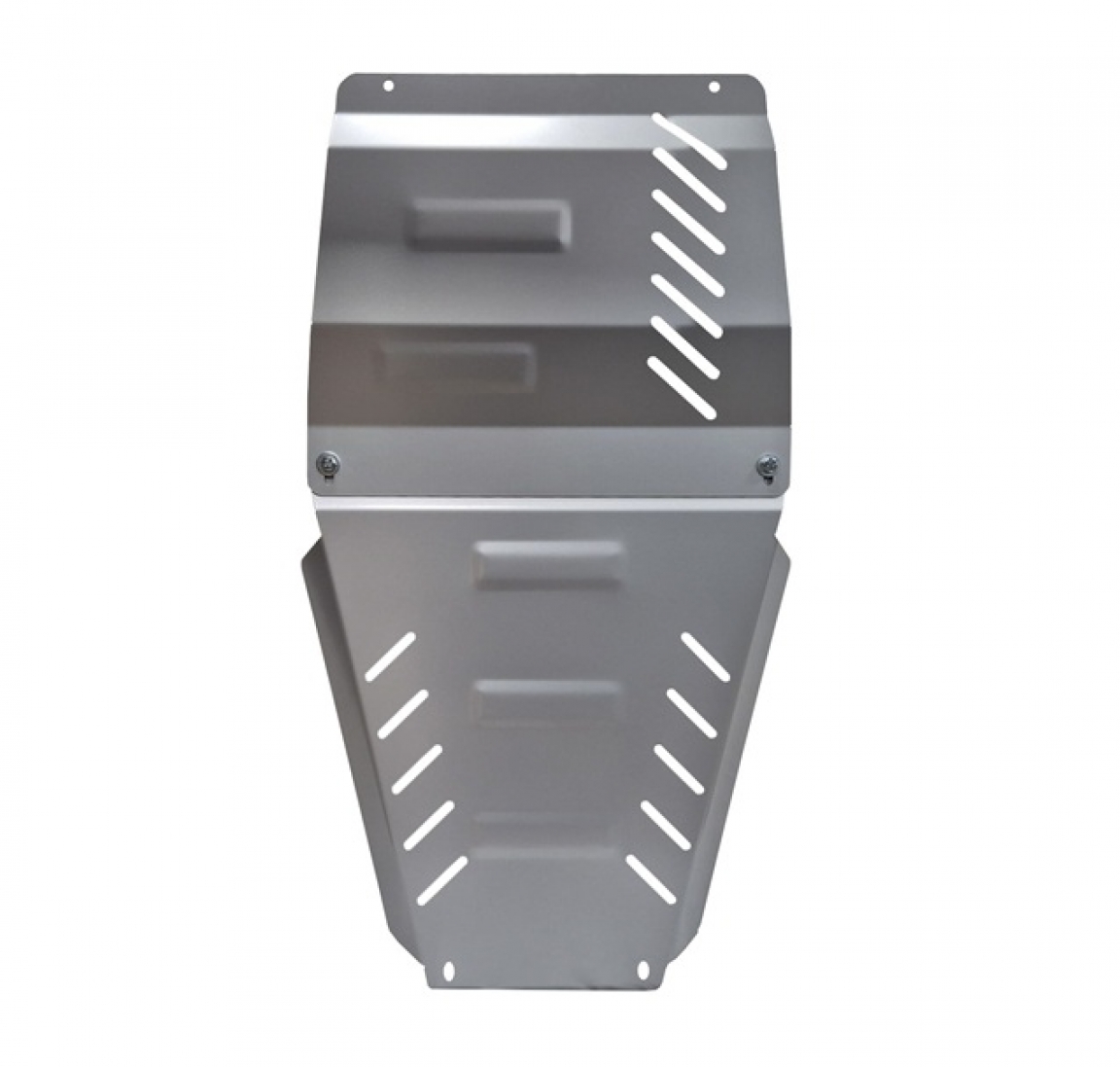 Le cache métallique protège: la boîte de vitesses, boite de transfert Le cache de protection est réalisé en Aluminium avec une épaisseur de 3 mm. Les boucliers sont en aluminium, mais les supports de fixation sont en acier. Vis, écrous, pinces, tous les accessoires de fixation sont inclus. Toutes les plaques de protection sont revêtues de poudre pour prévenir la corrosion. L'extérieur de la plaque de protection est doté de renforts en Aluminium, ce qui augmente la résistance aux chocs. |