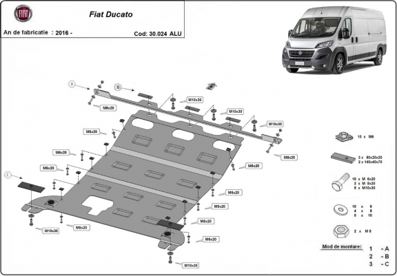 Aluminium protection sous moteur et de la boîte de vitesse Fiat Ducato (2016-2026)