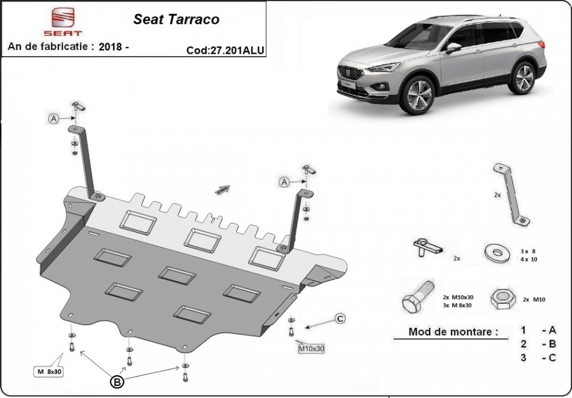 Aluminium protection sous moteur et de la boîte de vitesse Seat Tarraco (2018-2026)