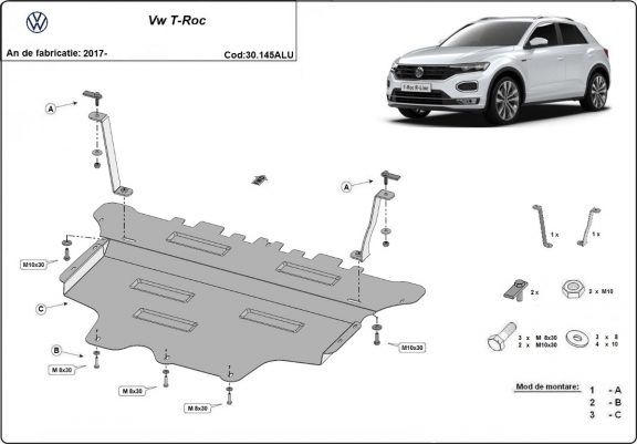 Aluminium protection sous moteur et de la boîte de vitesse Volkswagen T-Roc (2017-2026)