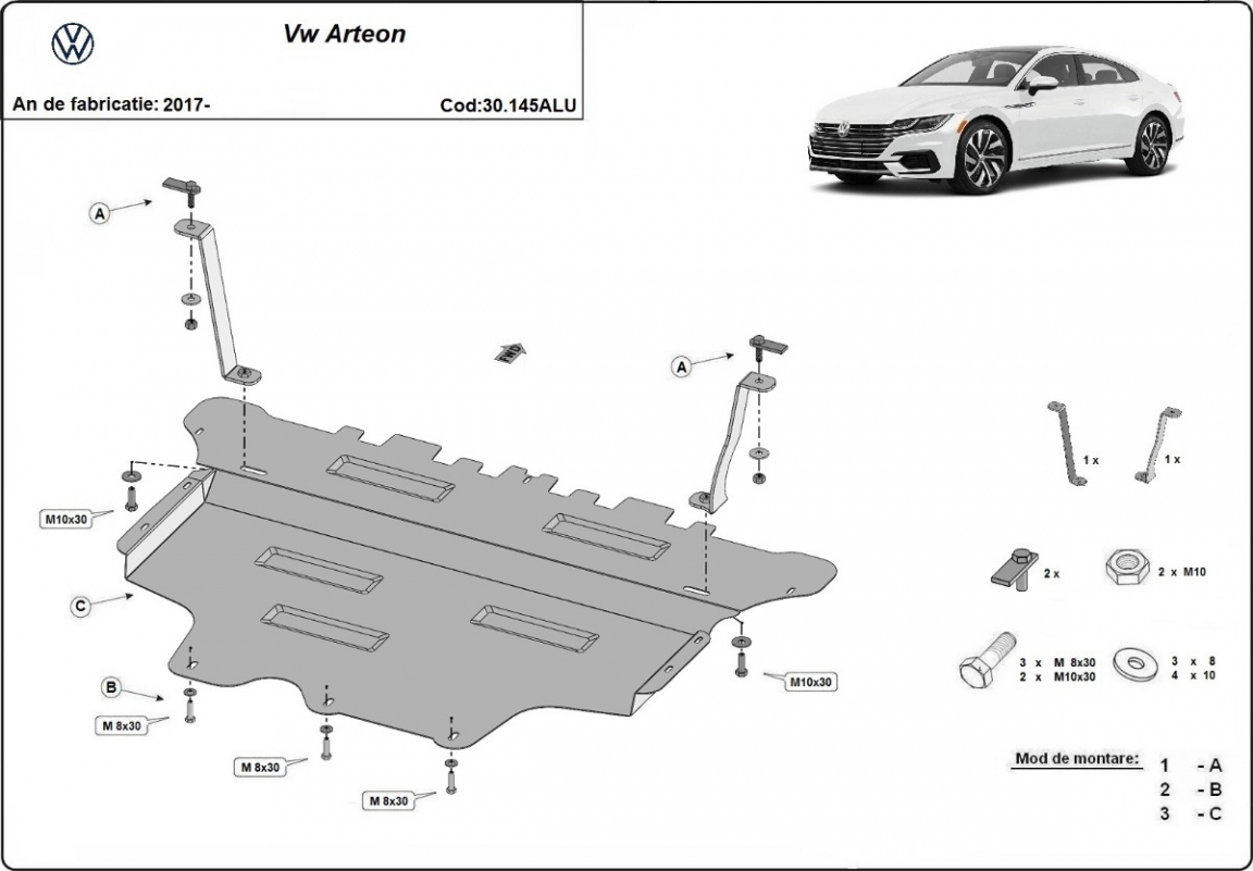 | Chaque voiture a des trous de vis fabriqués en usine pour le montage de la plaque de protection, ce qui rend le montage très facile. Vous pouvez le faire vous-même ou à n'importe quel point de service automatique. |