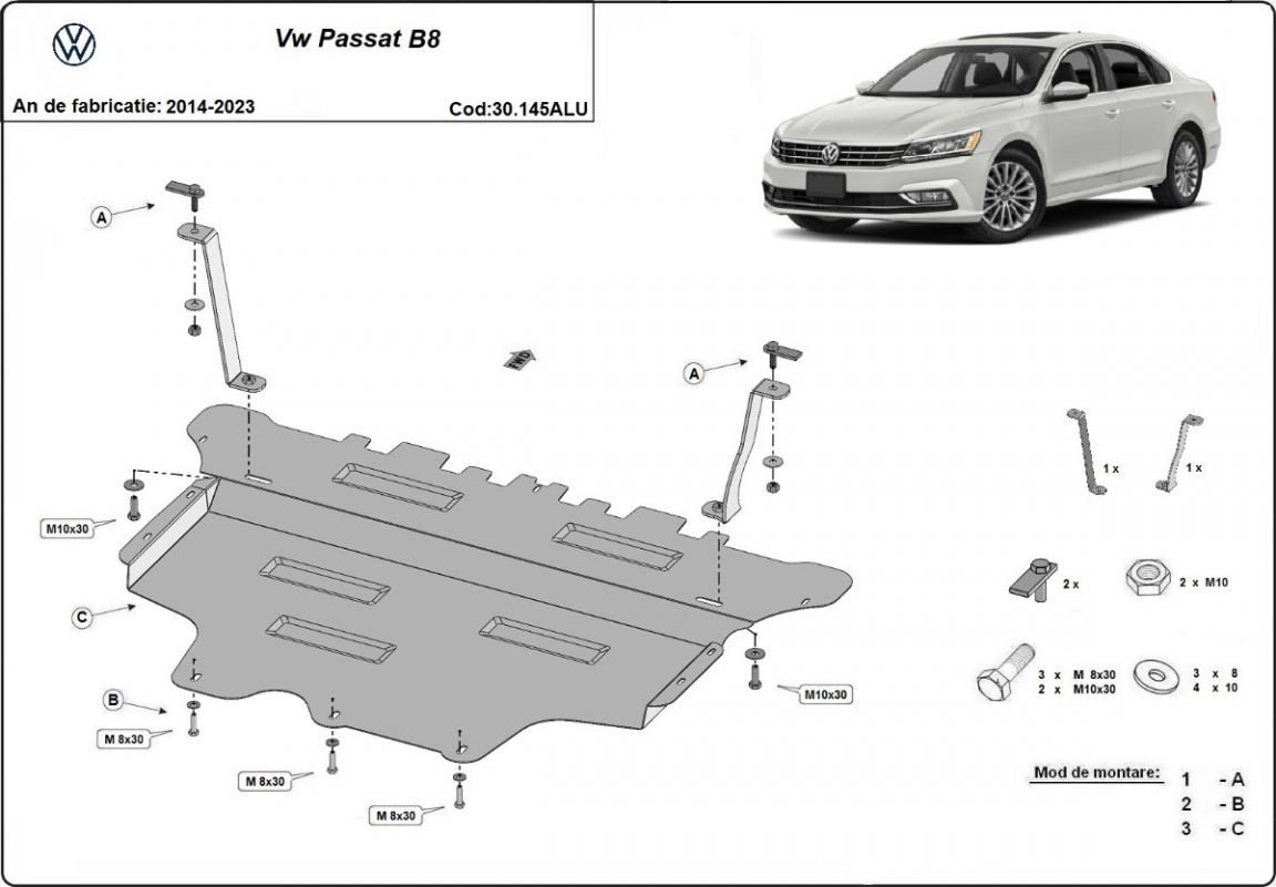Aluminium protection sous moteur et de la boîte de vitesse VW Passat B8 (2014-2023)