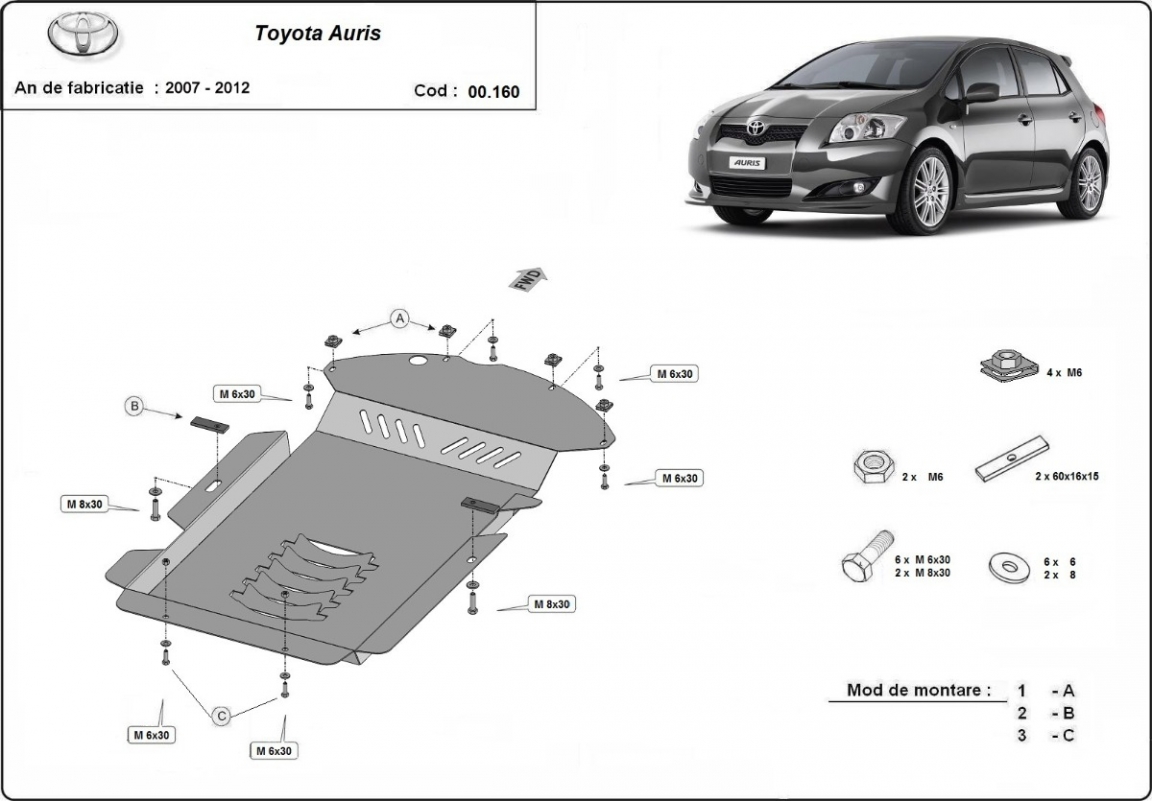 | Chaque voiture a des trous de vis fabriqués en usine pour le montage de la plaque de protection, ce qui rend le montage très facile. Vous pouvez le faire vous-même ou à n'importe quel point de service automatique. |