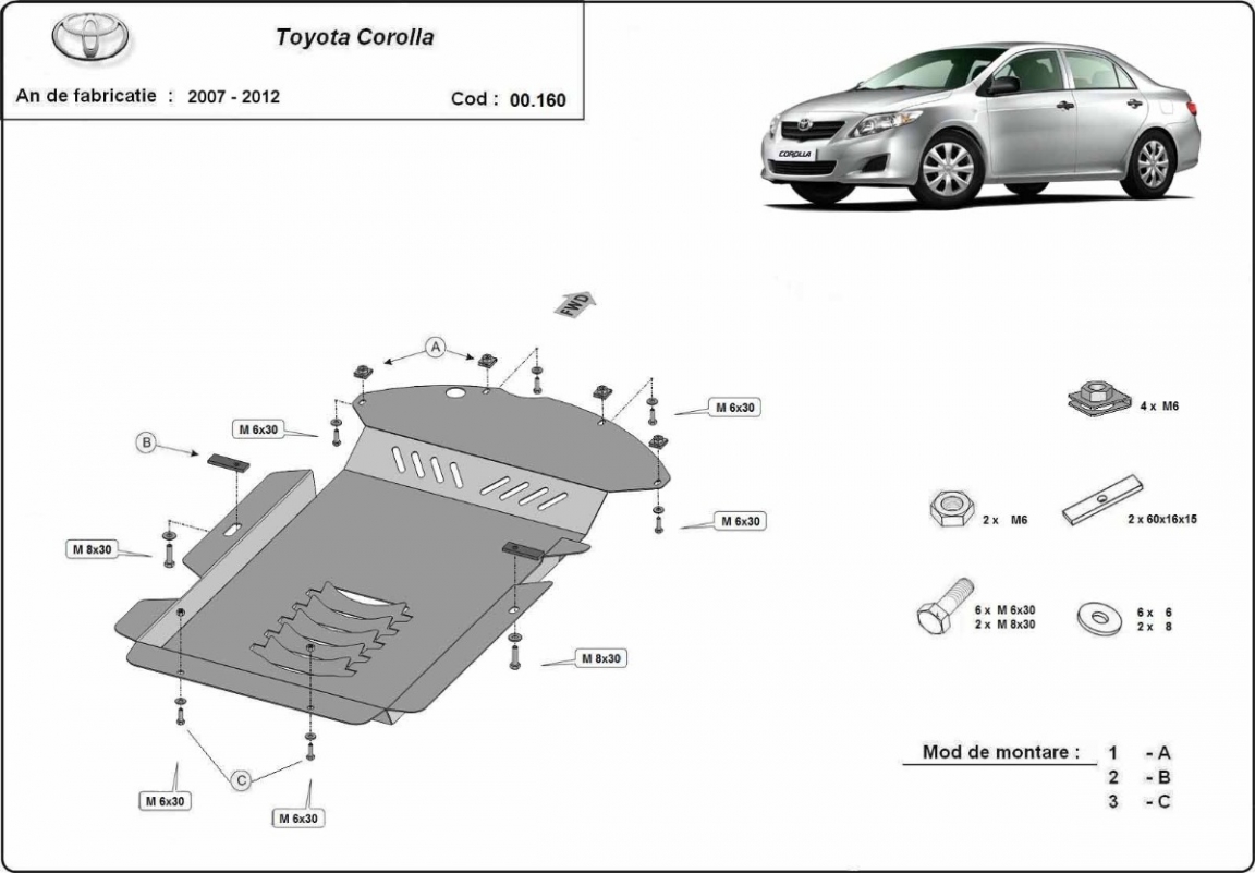 | Chaque voiture a des trous de vis fabriqués en usine pour le montage de la plaque de protection, ce qui rend le montage très facile. Vous pouvez le faire vous-même ou à n'importe quel point de service automatique. |