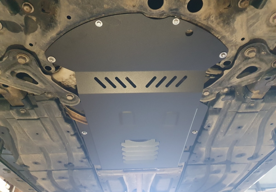 Le cache métallique protège: Convertisseur catalytique Le cache de protection est réalisé en Acier thermolaqué avec une épaisseur de 2 mm. Vis, écrous, pinces, tous les accessoires de fixation sont inclus. Toutes les plaques de protection sont revêtues de poudre pour prévenir la corrosion. L'extérieur de la plaque de protection est doté de renforts en Acier thermolaqué, ce qui augmente la résistance aux chocs. |
