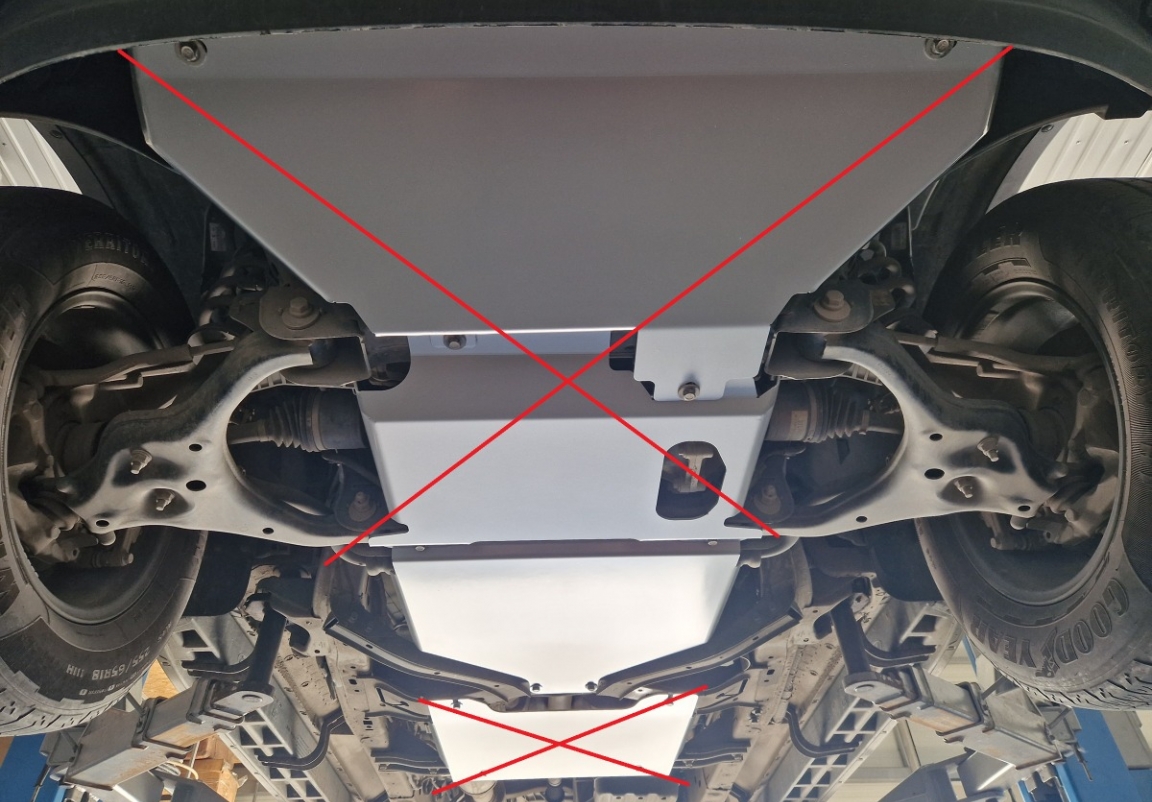 Le cache métallique protège: la boîte de vitesses Le cache de protection est réalisé en Acier thermolaqué avec une épaisseur de 3 mm. Vis, écrous, pinces, tous les accessoires de fixation sont inclus. Toutes les plaques de protection sont revêtues de poudre pour prévenir la corrosion. L'extérieur de la plaque de protection est doté de renforts en Acier thermolaqué, ce qui augmente la résistance aux chocs. |
