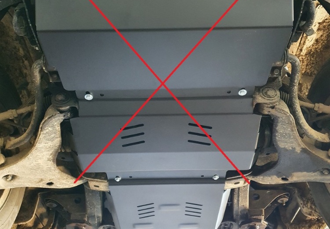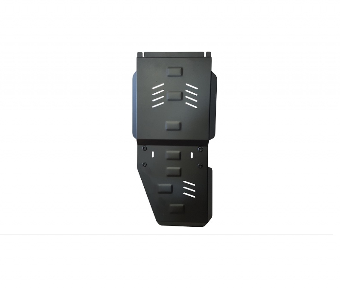 Le cache métallique protège: la boîte de vitesses, boîte de transfert Le cache de protection est réalisé en Acier thermolaqué avec une épaisseur de 3 mm. Vis, écrous, pinces, tous les accessoires de fixation sont inclus. Toutes les plaques de protection sont revêtues de poudre pour prévenir la corrosion. L'extérieur de la plaque de protection est doté de renforts en Acier thermolaqué, ce qui augmente la résistance aux chocs. |