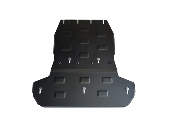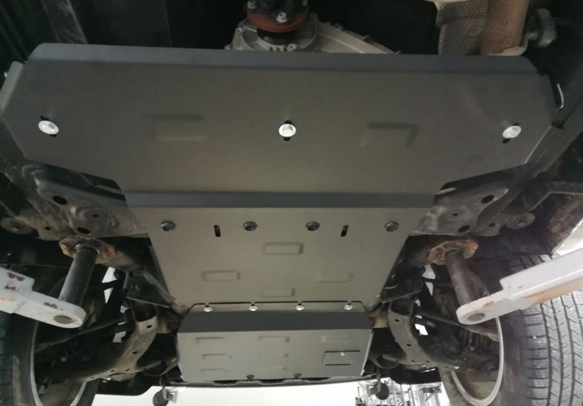 Le cache métallique protège: la boîte de vitesses, différentiel, boite de transfert Le cache de protection est réalisé en Acier thermolaqué avec une épaisseur de 2.5 mm. Vis, écrous, pinces, tous les accessoires de fixation sont inclus. Toutes les plaques de protection sont revêtues de poudre pour prévenir la corrosion. L'extérieur de la plaque de protection est doté de renforts en Acier thermolaqué, ce qui augmente la résistance aux chocs. |