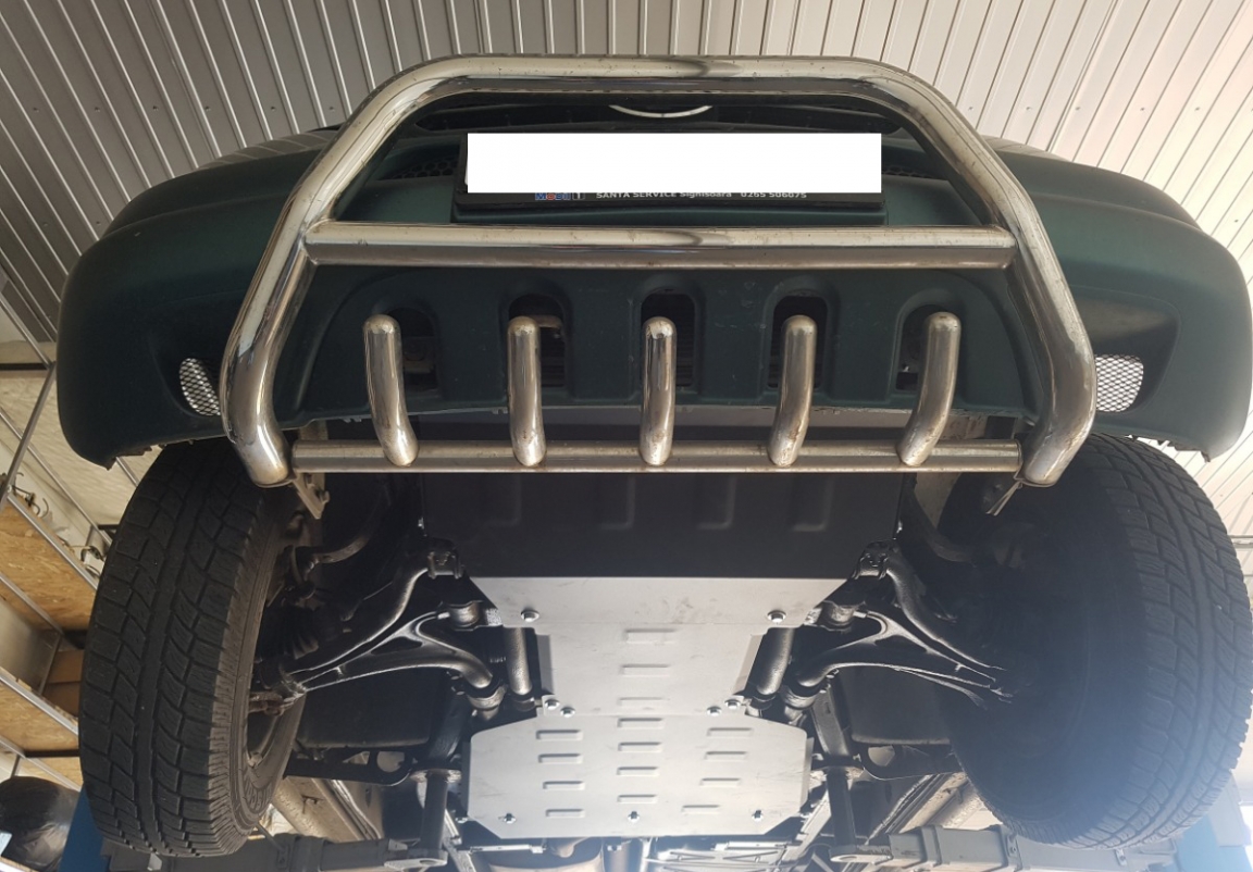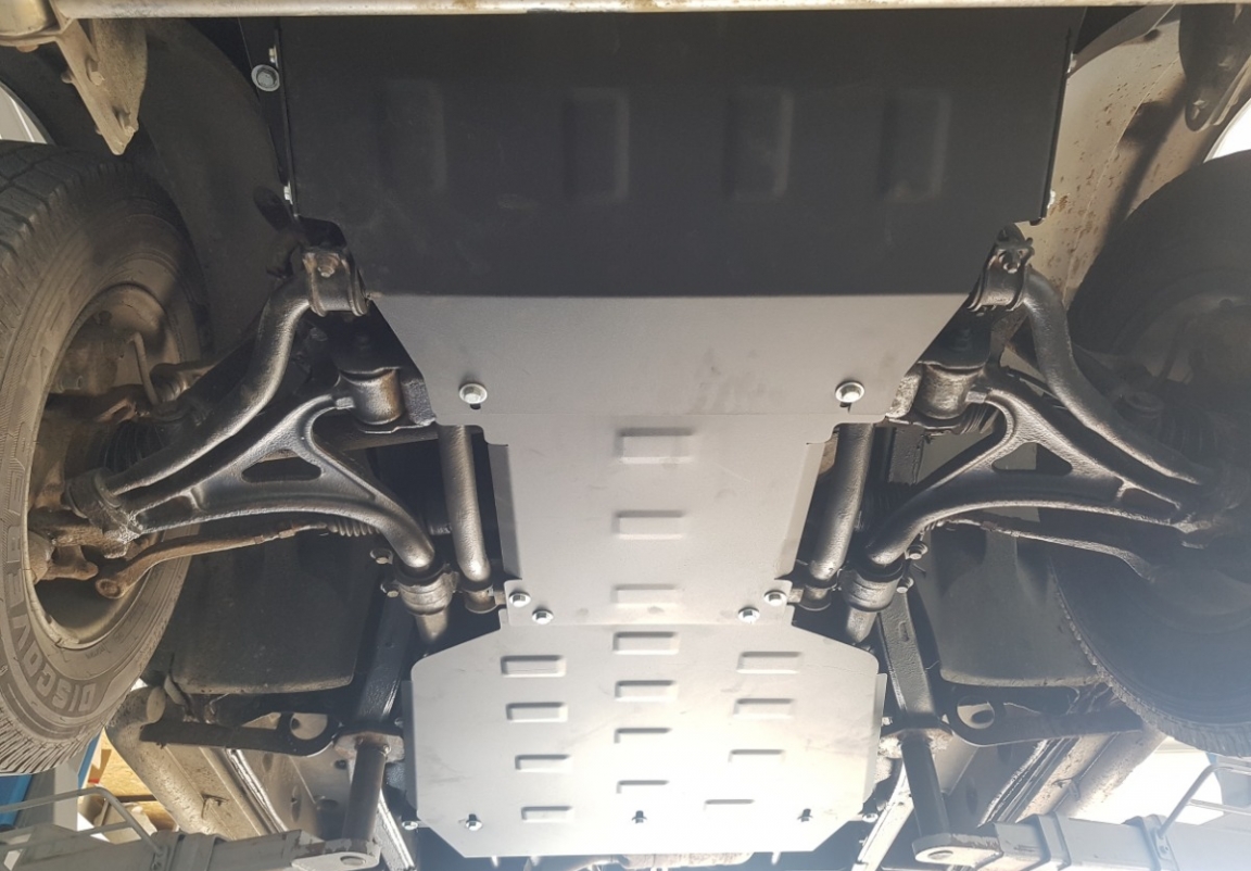Le cache métallique protège: la boîte de vitesses Le cache de protection est réalisé en Acier thermolaqué avec une épaisseur de 3 mm. Vis, écrous, pinces, tous les accessoires de fixation sont inclus. Toutes les plaques de protection sont revêtues de poudre pour prévenir la corrosion. L'extérieur de la plaque de protection est doté de renforts en Acier thermolaqué, ce qui augmente la résistance aux chocs. |