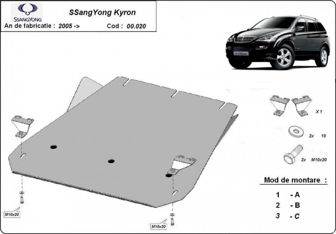 Protection sous moteur et de la radiateur SsangYong Kyron