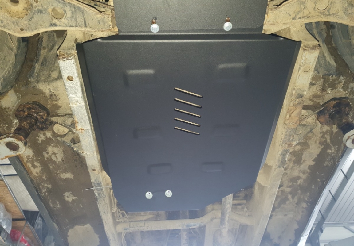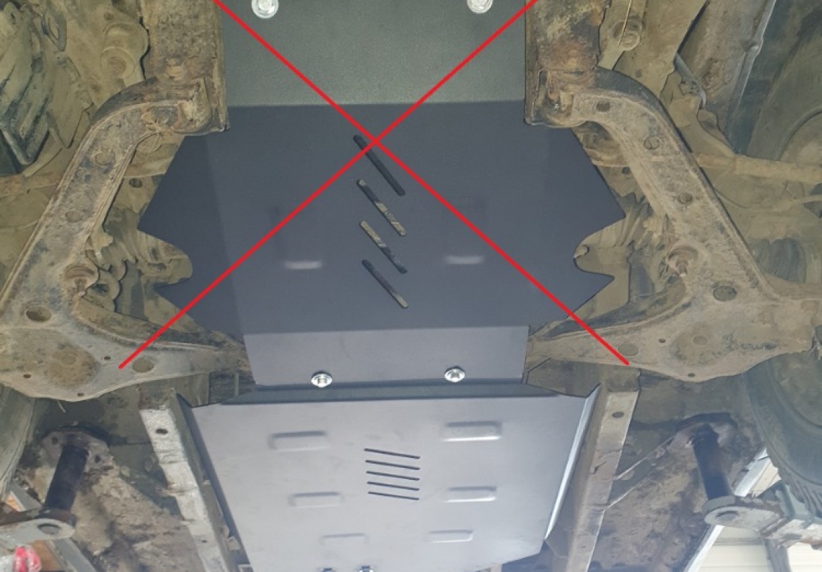 Le cache métallique protège: la boîte de vitesses Le cache de protection est réalisé en Acier thermolaqué avec une épaisseur de 3 mm. Vis, écrous, pinces, tous les accessoires de fixation sont inclus. Toutes les plaques de protection sont revêtues de poudre pour prévenir la corrosion. L'extérieur de la plaque de protection est doté de renforts en Acier thermolaqué, ce qui augmente la résistance aux chocs. |