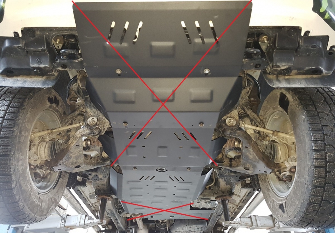 Le cache métallique protège: la boîte de vitesses Le cache de protection est réalisé en Acier thermolaqué avec une épaisseur de 3 mm. Vis, écrous, pinces, tous les accessoires de fixation sont inclus. Toutes les plaques de protection sont revêtues de poudre pour prévenir la corrosion. L'extérieur de la plaque de protection est doté de renforts en Acier thermolaqué, ce qui augmente la résistance aux chocs. |