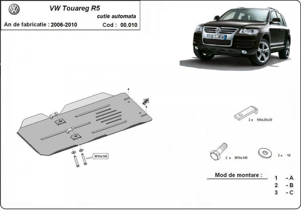 Protection de la boîte de vitesse Volkswagen Touareg 7L - automatique (2003-2010)