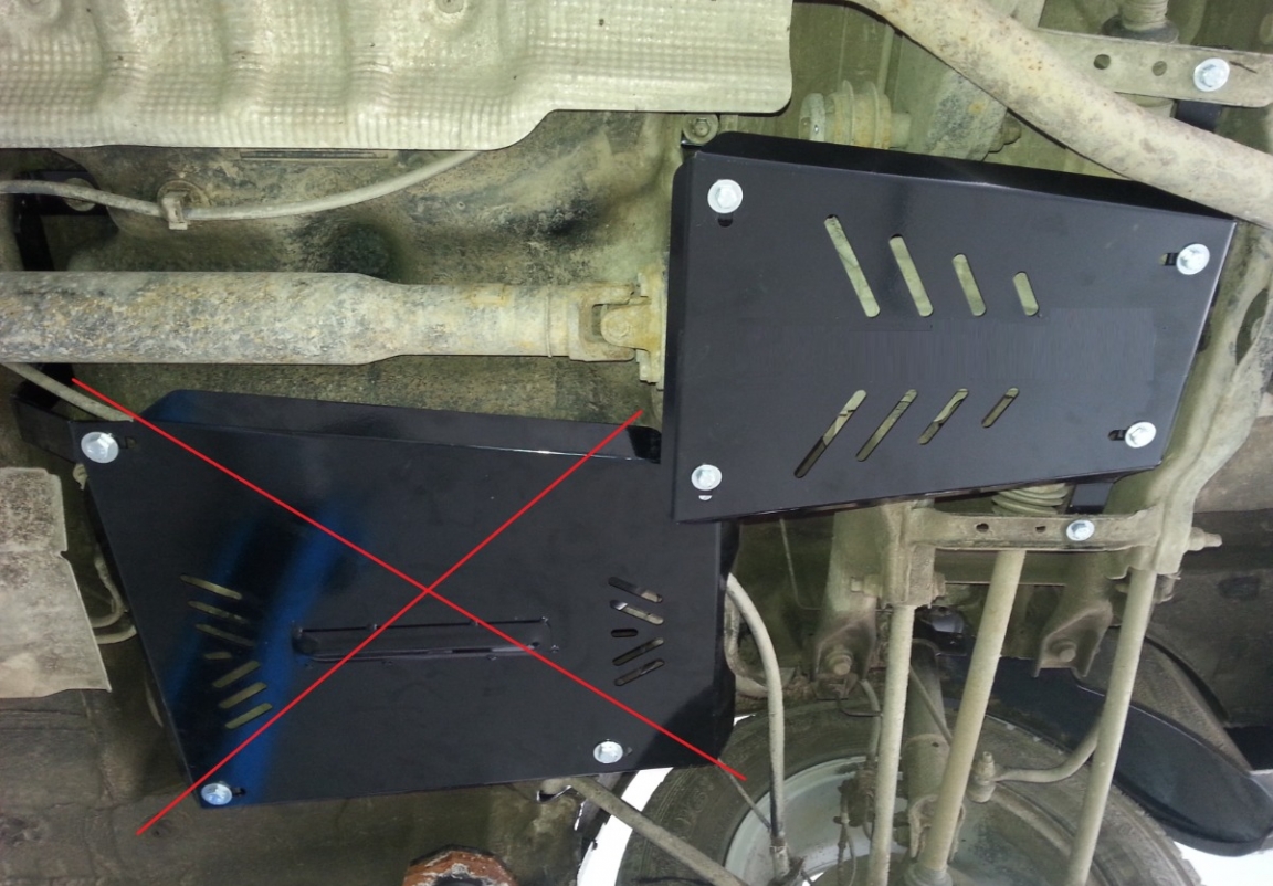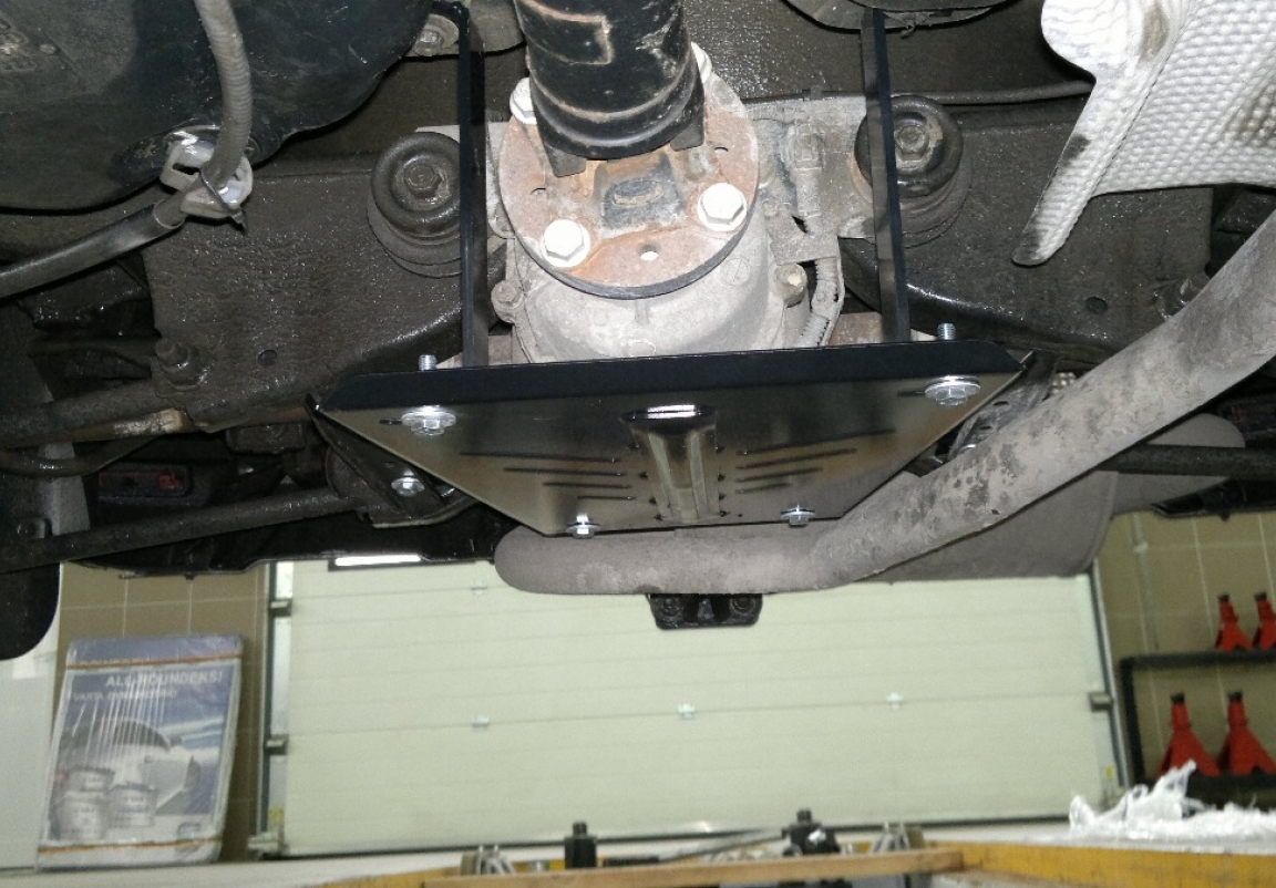 Le cache métallique protège: différentiel Le cache de protection est réalisé en Acier thermolaqué avec une épaisseur de 2 mm. Vis, écrous, pinces, tous les accessoires de fixation sont inclus. Toutes les plaques de protection sont revêtues de poudre pour prévenir la corrosion. L'extérieur de la plaque de protection est doté de renforts en Acier thermolaqué, ce qui augmente la résistance aux chocs. |