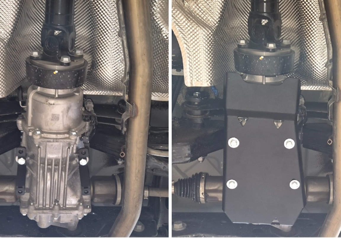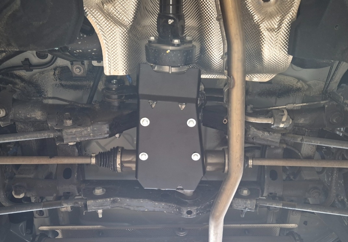 Le cache métallique protège: différentiel Le cache de protection est réalisé en Acier thermolaqué avec une épaisseur de 2 mm. Vis, écrous, pinces, tous les accessoires de fixation sont inclus. Toutes les plaques de protection sont revêtues de poudre pour prévenir la corrosion. L'extérieur de la plaque de protection est doté de renforts en Acier thermolaqué, ce qui augmente la résistance aux chocs. |