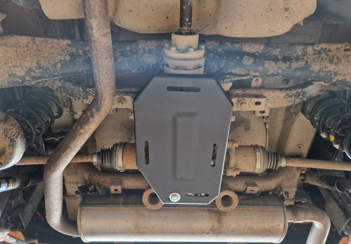 Le cache métallique protège: différentiel arriere Le cache de protection est réalisé en Acier thermolaqué avec une épaisseur de 2 mm. Vis, écrous, pinces, tous les accessoires de fixation sont inclus. Toutes les plaques de protection sont revêtues de poudre pour prévenir la corrosion. L'extérieur de la plaque de protection est doté de renforts en Acier thermolaqué, ce qui augmente la résistance aux chocs. |
