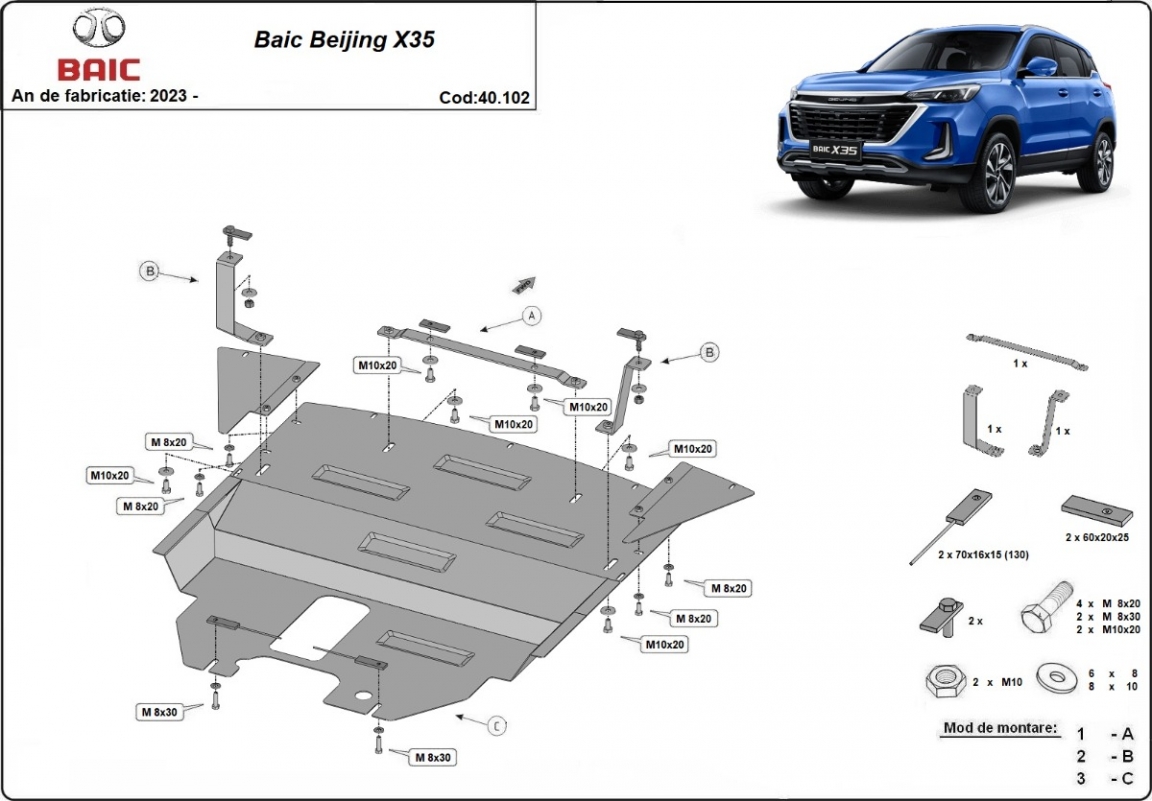 Protection Sous Moteur Baic Beijing X35 (2023-2026)