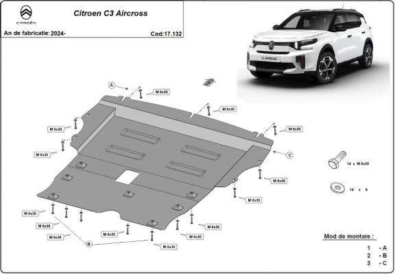 Protection sous moteur et de la boîte de vitesse Citroen C3 Aircross (2024-2026)