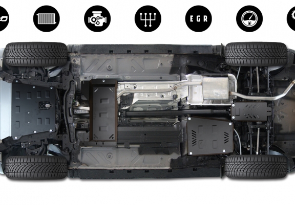 Le cache métallique protège: le bas du moteur, la boîte de vitesses, radiateur, pare-choc avant, différentiel, réservoir, EGR, system STOP&GO, réservoir AdBlue Il y a une ouverture pour le carter d'huile, il n'est donc pas nécessaire de l'enlever pour changer l'huile. Le cache de protection est réalisé en Acier thermolaqué avec une épaisseur de 2 mm. Vis, écrous, pinces, tous les accessoires de fixation sont inclus. Toutes les plaques de protection sont revêtues de poudre pour prévenir la corrosion. L'extérieur de la plaque de protection est doté de renforts en Acier thermolaqué, ce qui augmente la résistance aux chocs. |