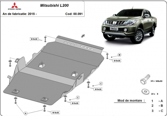 Protection sous moteur, de la boîte de vitesse et de la différentiel Mitsubishi L200 (2015-2026)