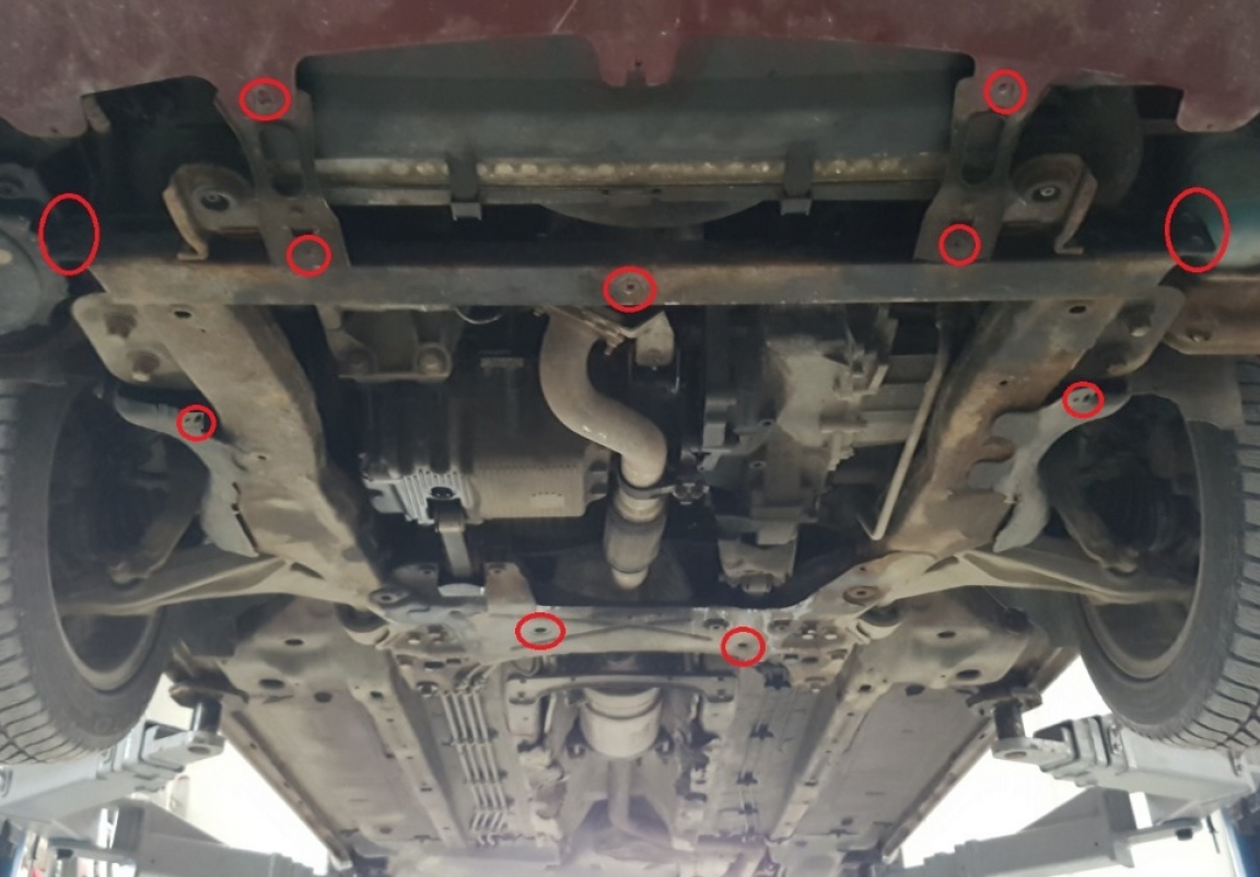 | Chaque voiture a des trous de vis fabriqués en usine pour le montage de la plaque de protection, ce qui rend le montage très facile. Vous pouvez le faire vous-même ou à n'importe quel point de service automatique. |