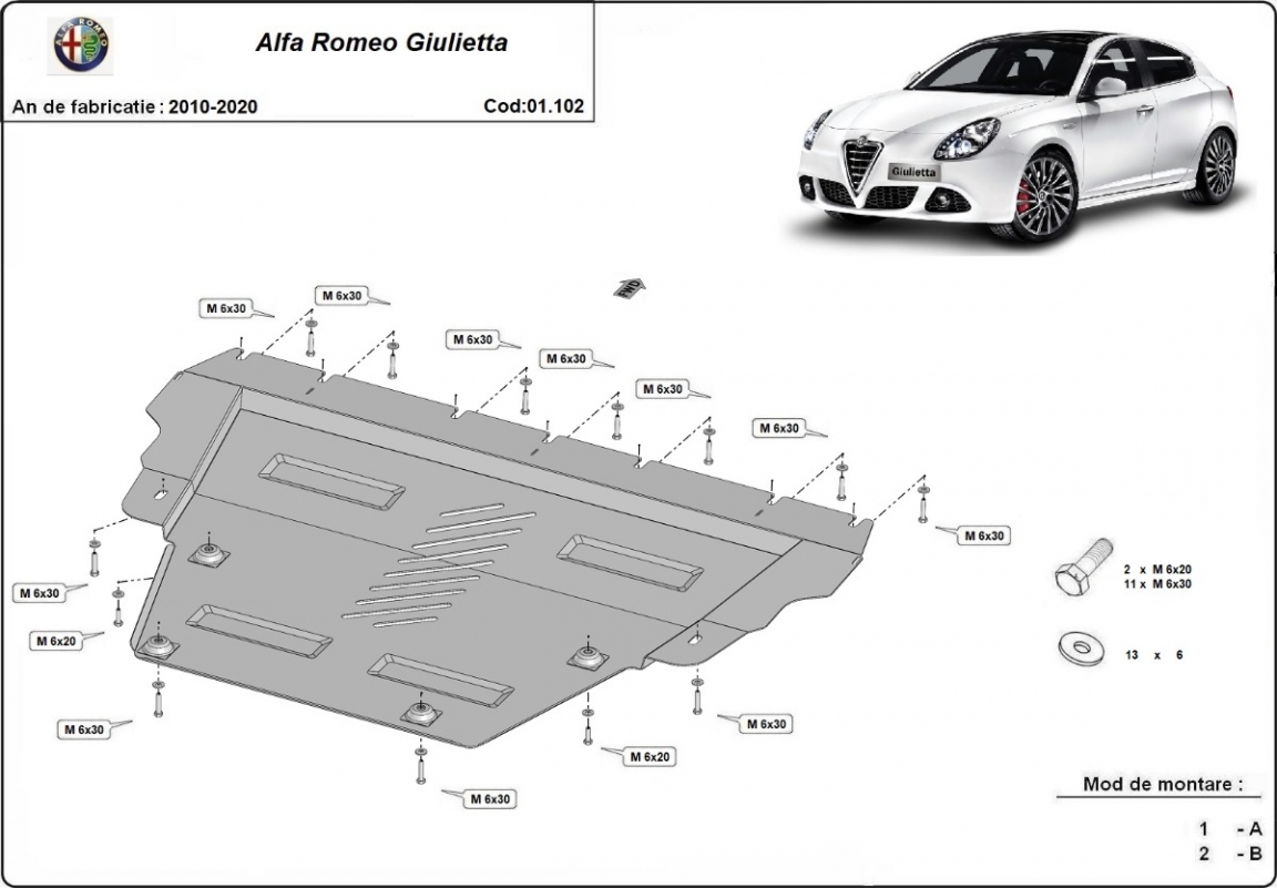 Protection sous moteur et de la boîte de vitesse Alfa Romeo Giulietta (2010-2020)