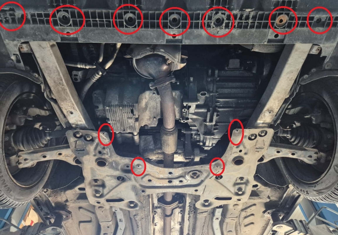 | Chaque voiture a des trous de vis fabriqués en usine pour le montage de la plaque de protection, ce qui rend le montage très facile. Vous pouvez le faire vous-même ou à n'importe quel point de service automatique. |