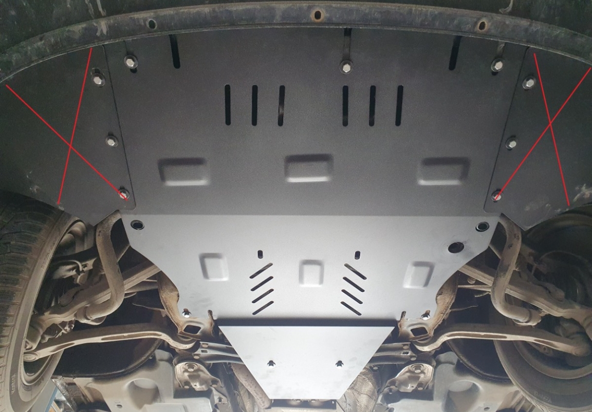 Le cache métallique protège: le bas du moteur, la boîte de vitesses, radiateur, pare-choc avant Le cache de protection est réalisé en Acier thermolaqué avec une épaisseur de 2 mm. Vis, écrous, pinces, tous les accessoires de fixation sont inclus. Toutes les plaques de protection sont revêtues de poudre pour prévenir la corrosion. L'extérieur de la plaque de protection est doté de renforts en Acier thermolaqué, ce qui augmente la résistance aux chocs. |