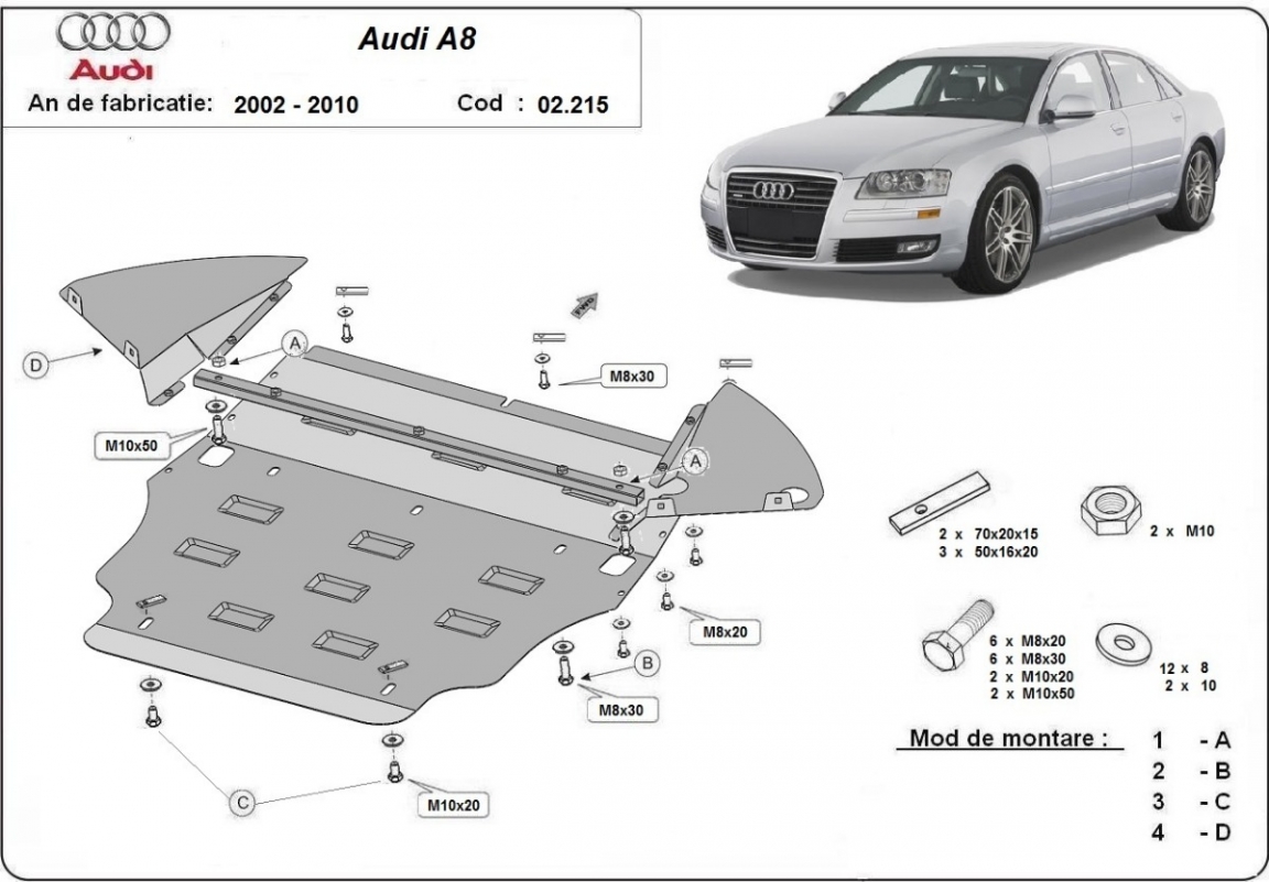 Protection sous moteur et de la boîte de vitesse Audi A8 (2002-2010)