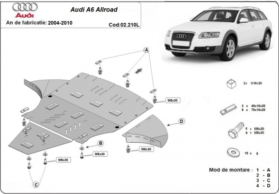 Protection sous moteur et de la boîte de vitesse Audi A6 Allroad 2 - avec latéraux (2005-2011)