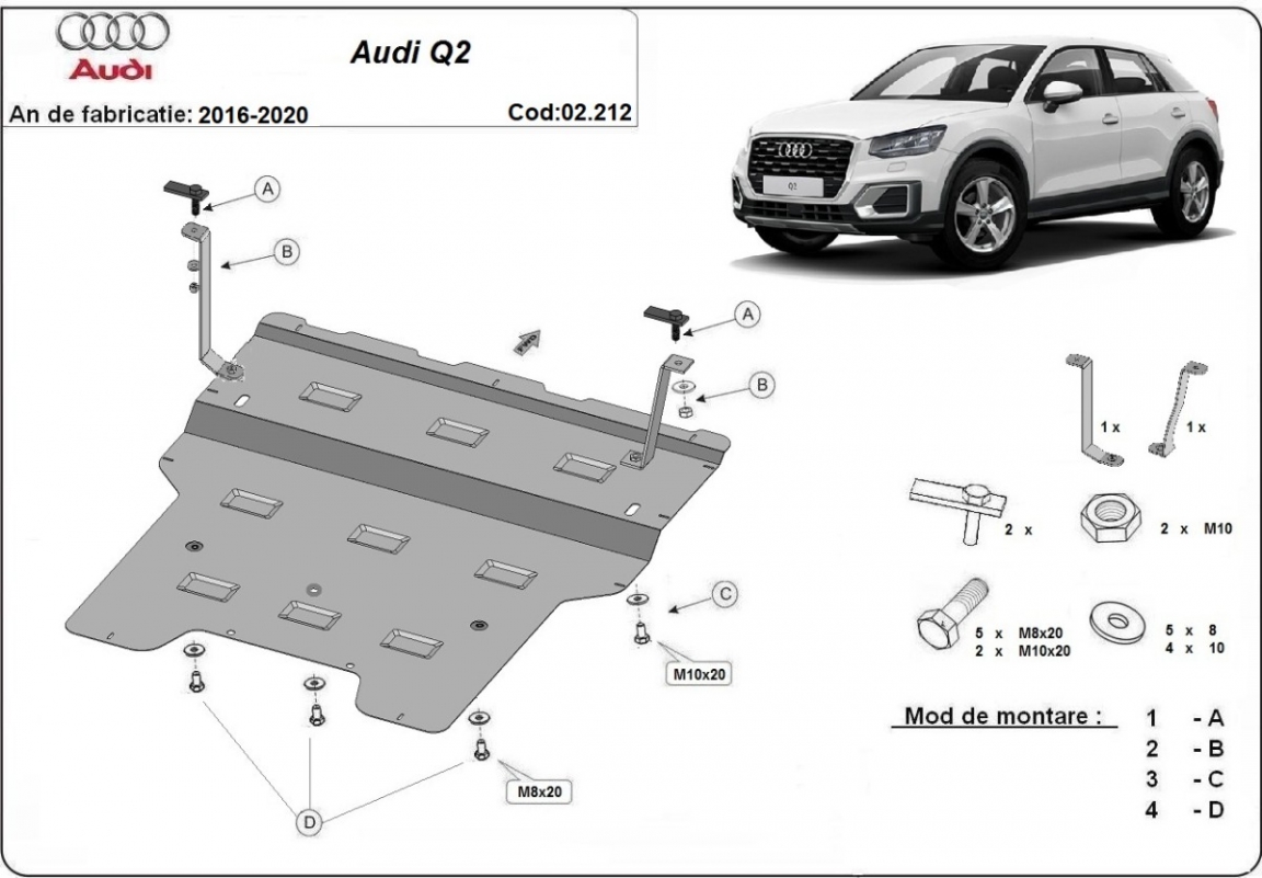 Protection sous moteur et de la boîte de vitesse Audi Q2 (2016-2020)