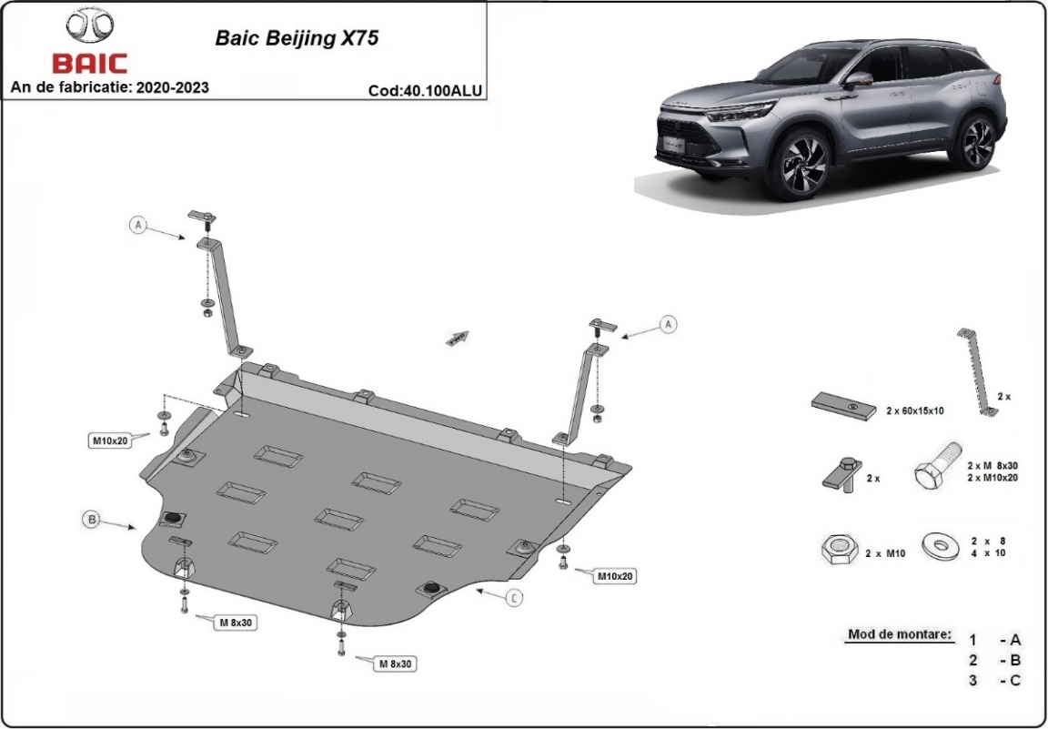 Protection sous moteur et de la boîte de vitesse BAIC Beijing X75 (2020-2023)