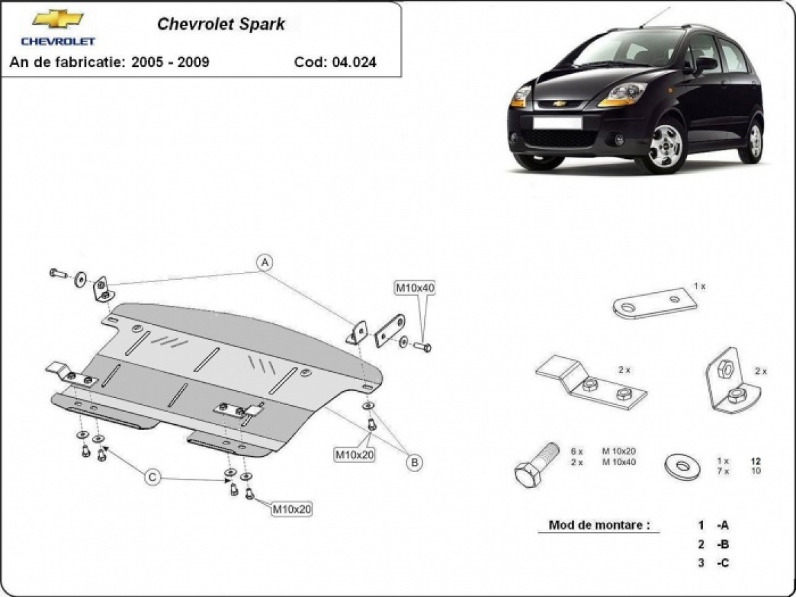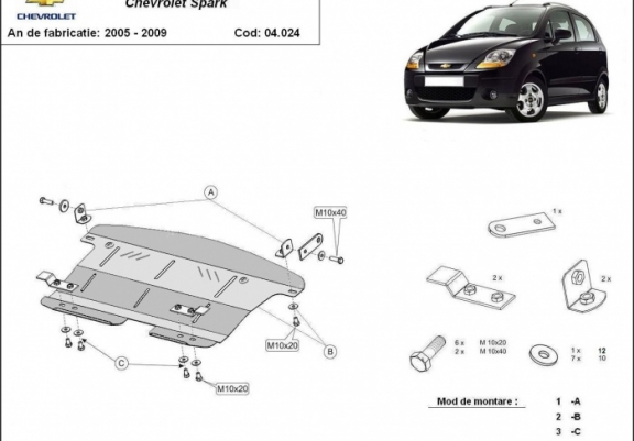 Protection sous moteur et de la boîte de vitesse Chevrolet Spark