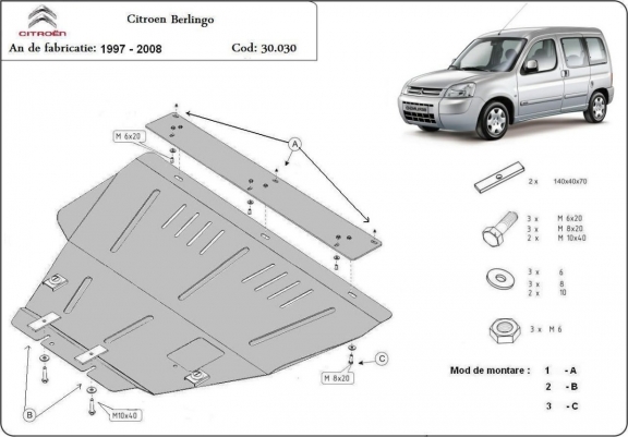 Protection sous moteur et de la boîte de vitesse Citroen Berlingo (1997-2008)