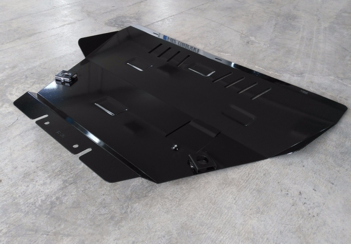 Le cache métallique protège: le bas du moteur, la boîte de vitesses, radiateur Il y a une ouverture pour le carter d'huile, il n'est donc pas nécessaire de l'enlever pour changer l'huile. Le cache de protection est réalisé en Acier thermolaqué avec une épaisseur de 2 mm. Vis, écrous, pinces, tous les accessoires de fixation sont inclus. Toutes les plaques de protection sont revêtues de poudre pour prévenir la corrosion. L'extérieur de la plaque de protection est doté de renforts en Acier thermolaqué, ce qui augmente la résistance aux chocs. |