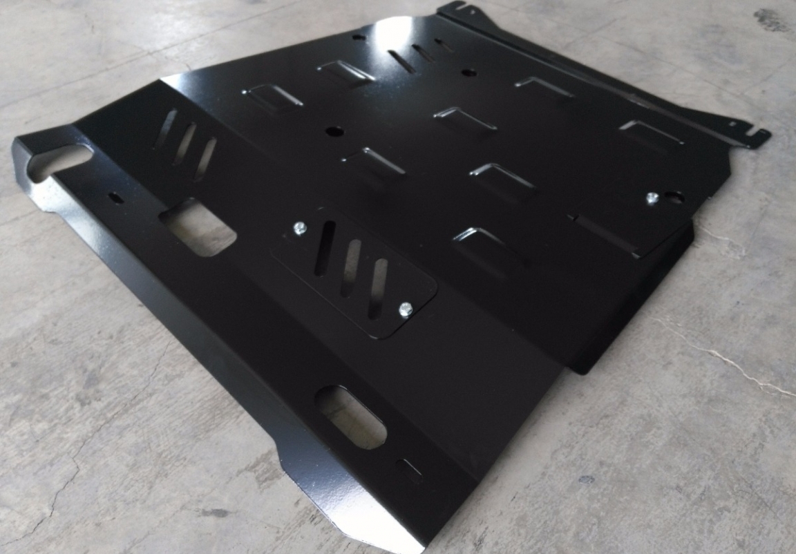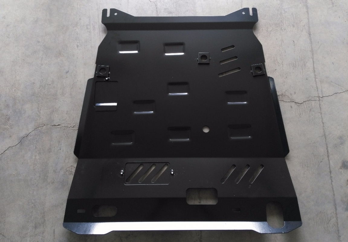 Le cache métallique protège: le bas du moteur, la boîte de vitesses, radiateur Il y a une ouverture pour le carter d'huile, il n'est donc pas nécessaire de l'enlever pour changer l'huile. Le cache de protection est réalisé en Acier thermolaqué avec une épaisseur de 2.5 mm. Vis, écrous, pinces, tous les accessoires de fixation sont inclus. Toutes les plaques de protection sont revêtues de poudre pour prévenir la corrosion. L'extérieur de la plaque de protection est doté de renforts en Acier thermolaqué, ce qui augmente la résistance aux chocs. |