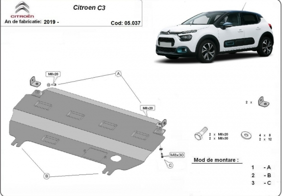 Protection sous moteur et de la boîte de vitesse Citroen C3 (2019-2026)