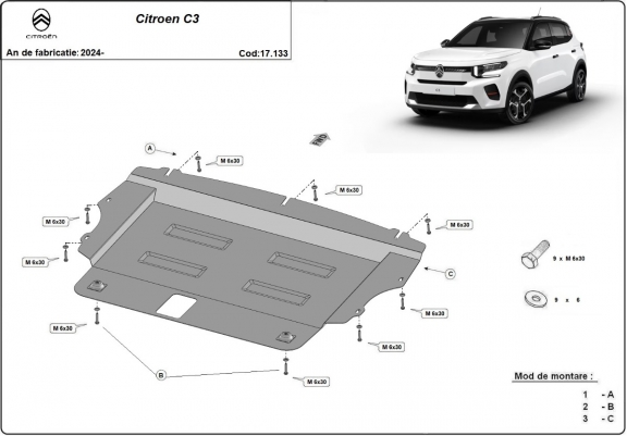 Protection sous moteur et de la boîte de vitesse Citroen C3 (2024-2026)