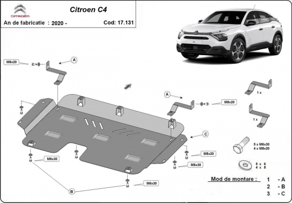 Protection sous moteur et de la boîte de vitesse Citroen C4 (2020-2026)