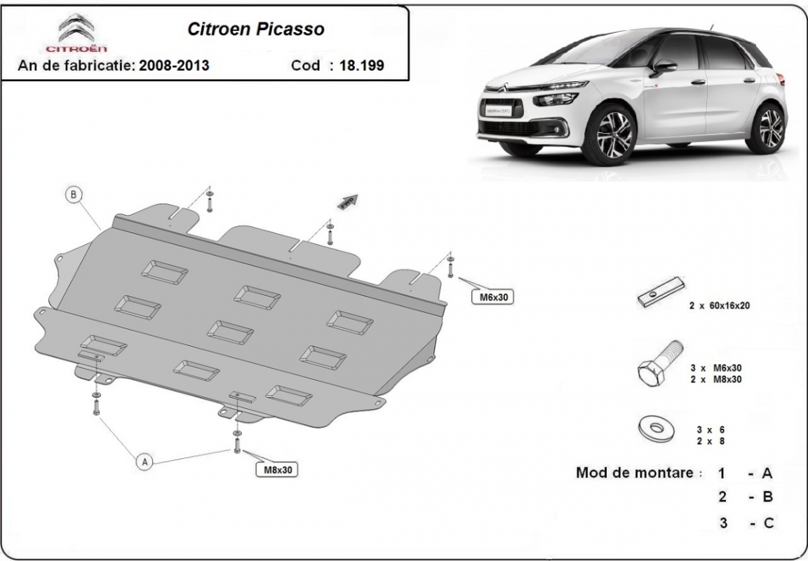 Protection sous moteur et de la boîte de vitesse Citroen C4 Picasso (2008-2013)