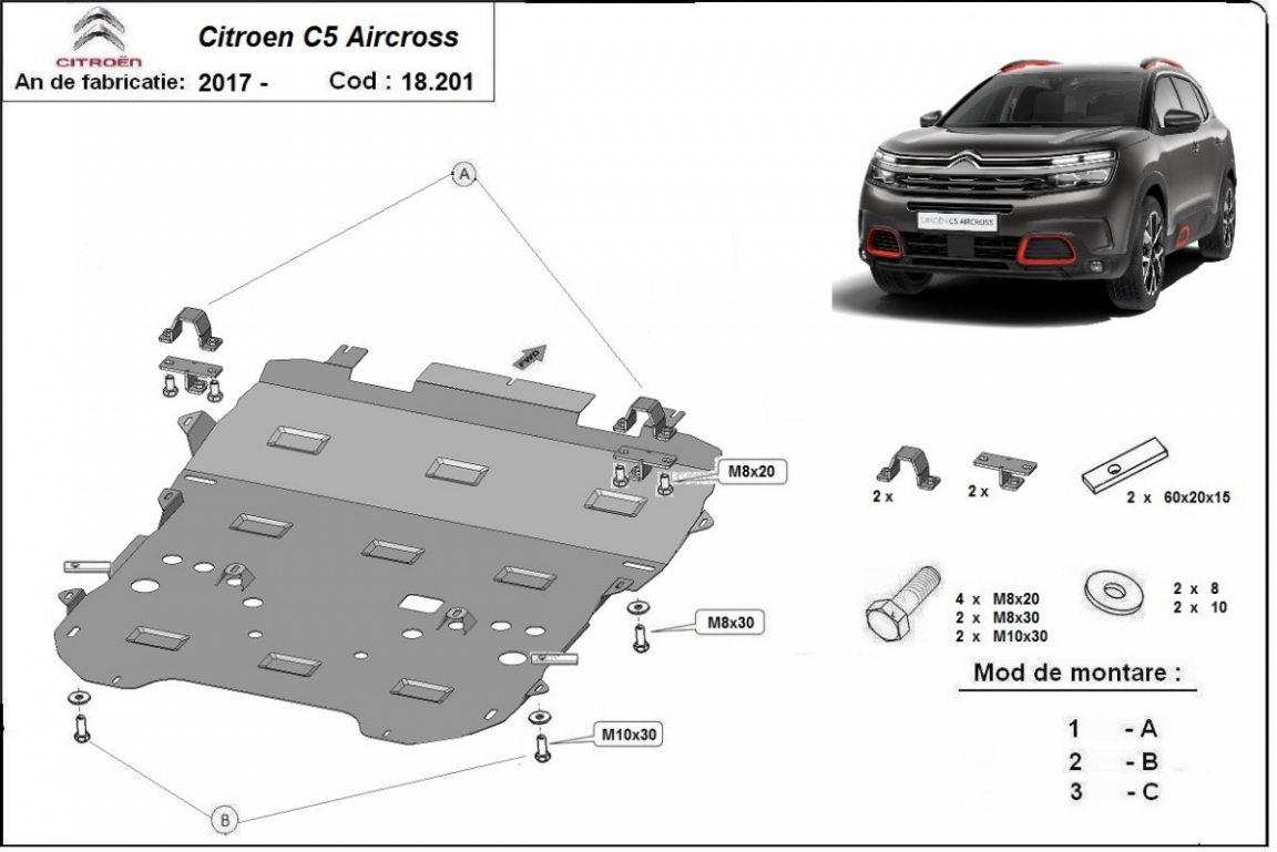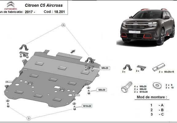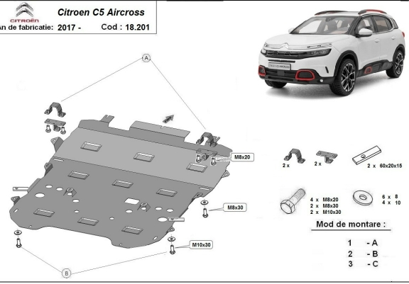 Protection sous moteur et de la boîte de vitesse Citroen C5 Aircross (2017-2026)