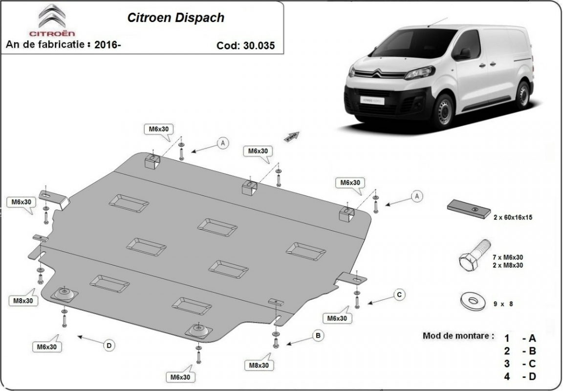 Protection sous moteur et de la boîte de vitesse Citroen Dispatch (2016-2026)