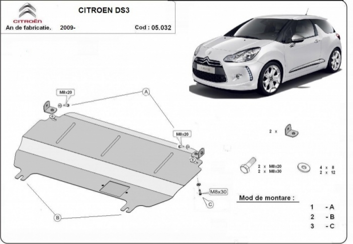 Protection sous moteur et de la boîte de vitesse Citroen DS3 (2009-2026)