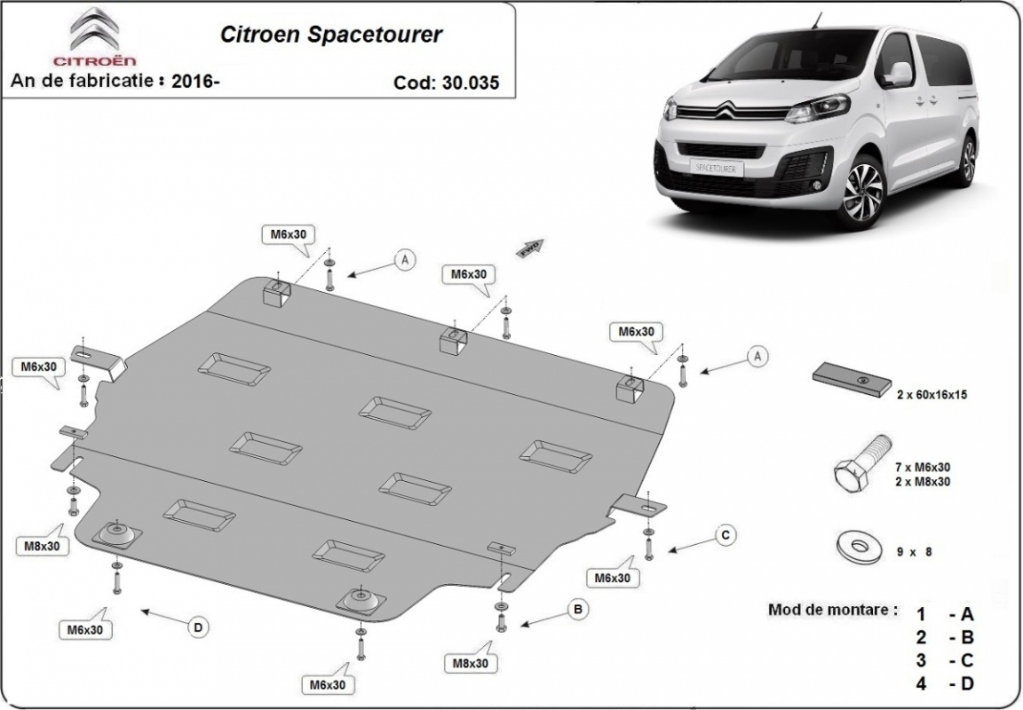 Protection sous moteur et de la boîte de vitesse Citroen Spacetourer (2016-2026)
