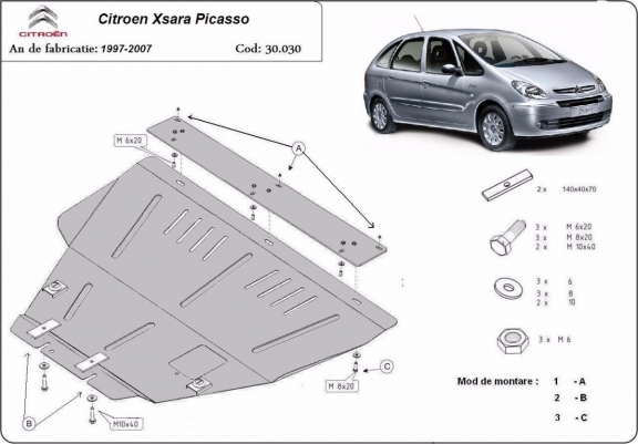 Protection sous moteur et de la boîte de vitesse Citroen Xsara Picasso (1999-2009)