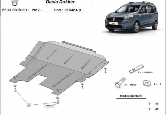 Aluminium protection sous moteur et de la boîte de vitesse Dacia Dokker (2012-2026)