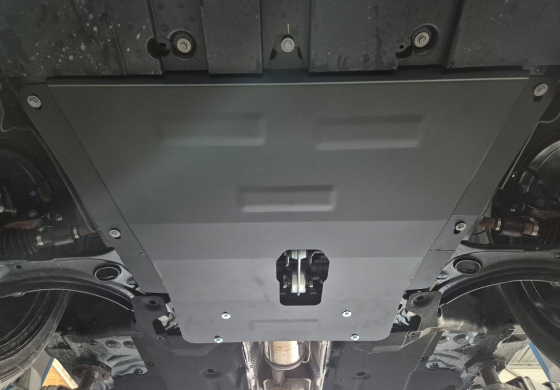 Le cache métallique protège: le bas du moteur, la boîte de vitesses Le cache de protection est réalisé en Acier thermolaqué avec une épaisseur de 2 mm. Vis, écrous, pinces, tous les accessoires de fixation sont inclus. Toutes les plaques de protection sont revêtues de poudre pour prévenir la corrosion. L'extérieur de la plaque de protection est doté de renforts en Acier thermolaqué, ce qui augmente la résistance aux chocs. |