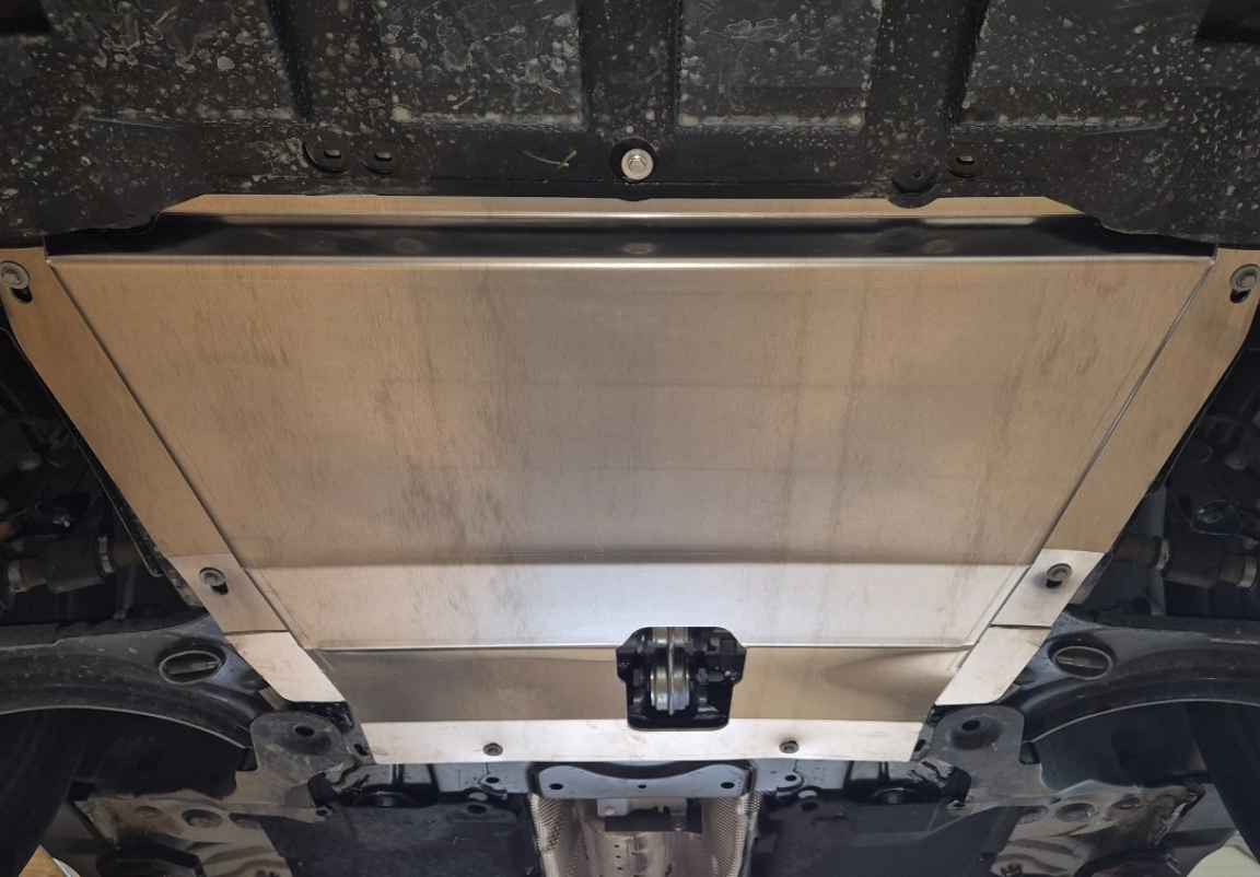 Le cache métallique protège: le bas du moteur, la boîte de vitesses Le cache de protection est réalisé en Aluminium avec une épaisseur de 3 mm. Les boucliers sont en aluminium, mais les supports de fixation sont en acier. Vis, écrous, pinces, tous les accessoires de fixation sont inclus. Toutes les plaques de protection sont revêtues de poudre pour prévenir la corrosion. L'extérieur de la plaque de protection est doté de renforts en Aluminium, ce qui augmente la résistance aux chocs. |