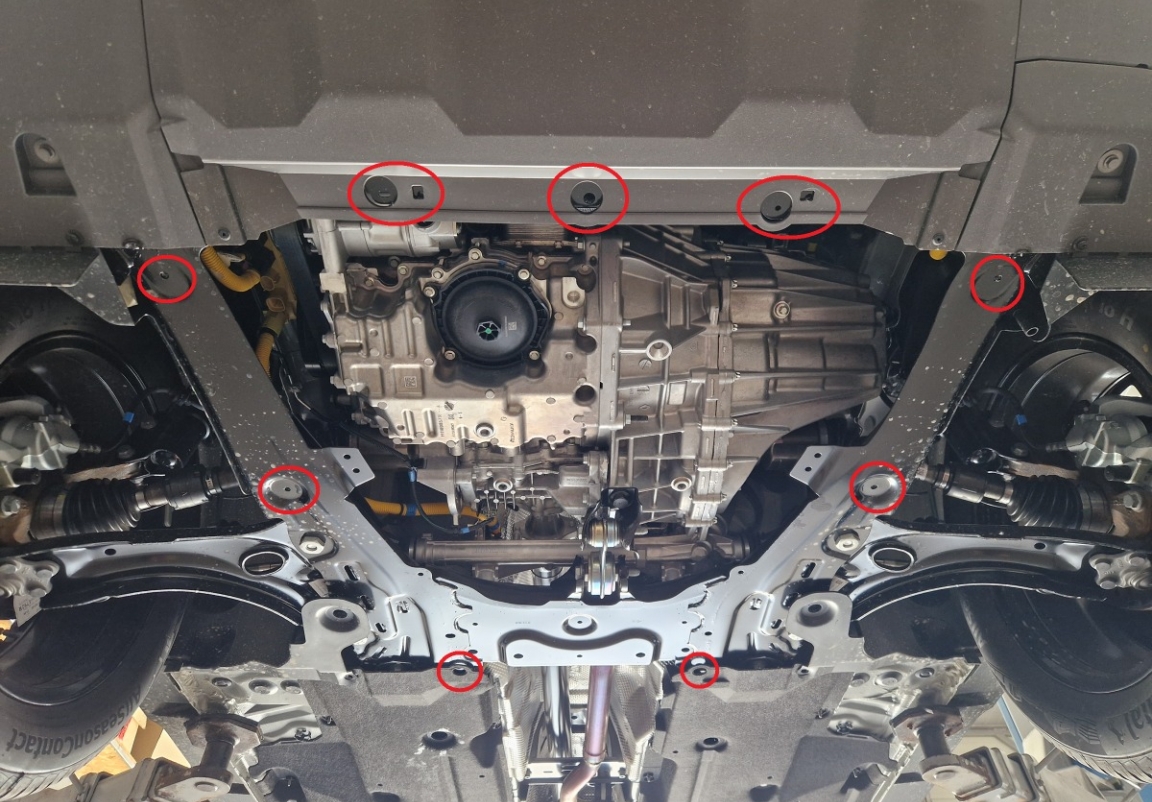 | Chaque voiture a des trous de vis fabriqués en usine pour le montage de la plaque de protection, ce qui rend le montage très facile. Vous pouvez le faire vous-même ou à n'importe quel point de service automatique. |