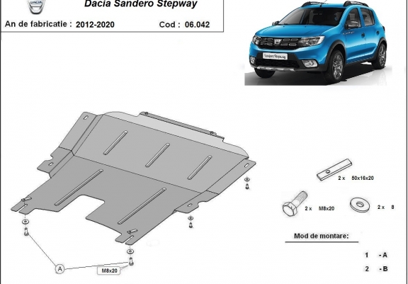 Protection sous moteur et de la boîte de vitesse Dacia Sandero 2 Stepway (2012-2020)
